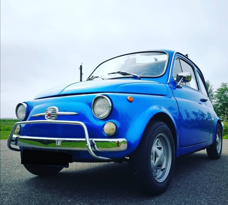 De Fiat 500 (oldtimer). Piepklein maar zo handig. En met de picknickmand achterop voelt elke rit naar de klant als een dagje uit.